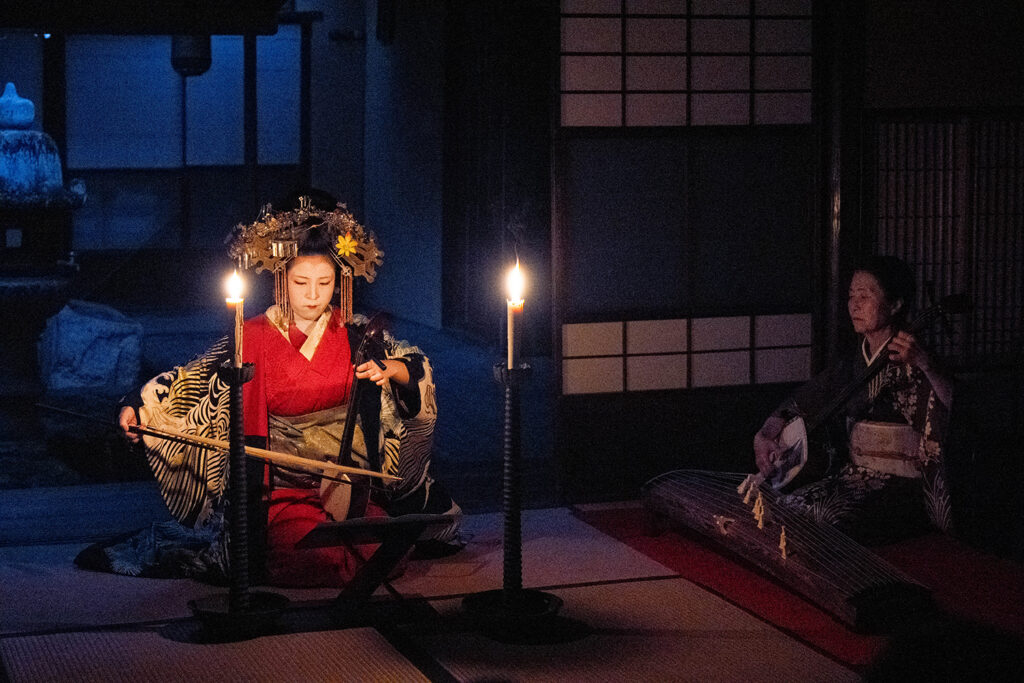白粉の香り、衣擦れの音、三味線の響き。